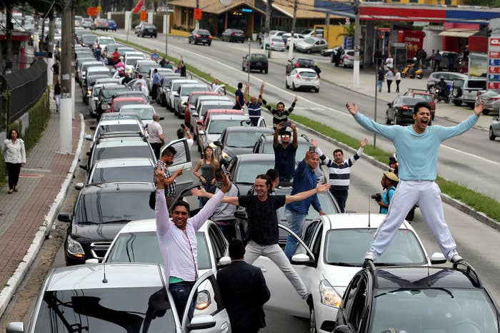 Motoristas de Uber protestam contra proposta de lei que ameaçava o modelo de negócios da empresa, em São Paulo, em 30 de outubro de 2017.